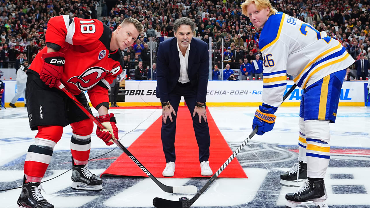 Jaromir Jagr mit dem zeremoniellen Eröffnungsbullys in Tschechien NHL