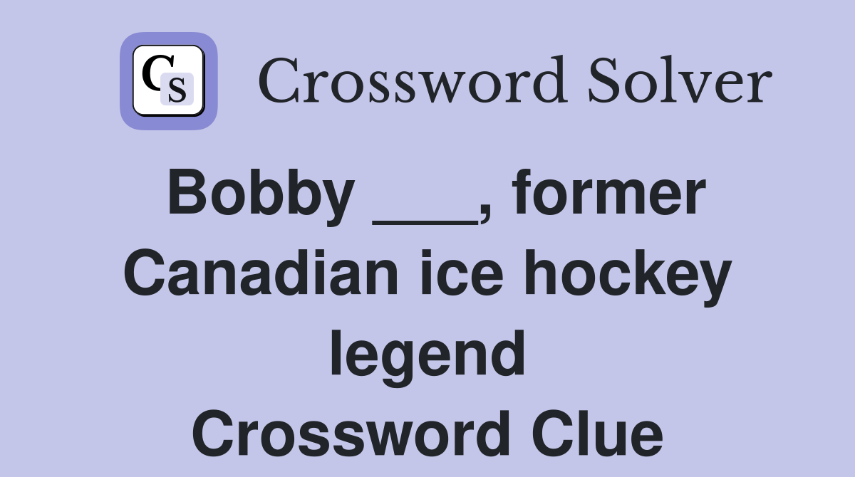 Former Canadian ice hockey legend Bobby Crossword Clue Answers