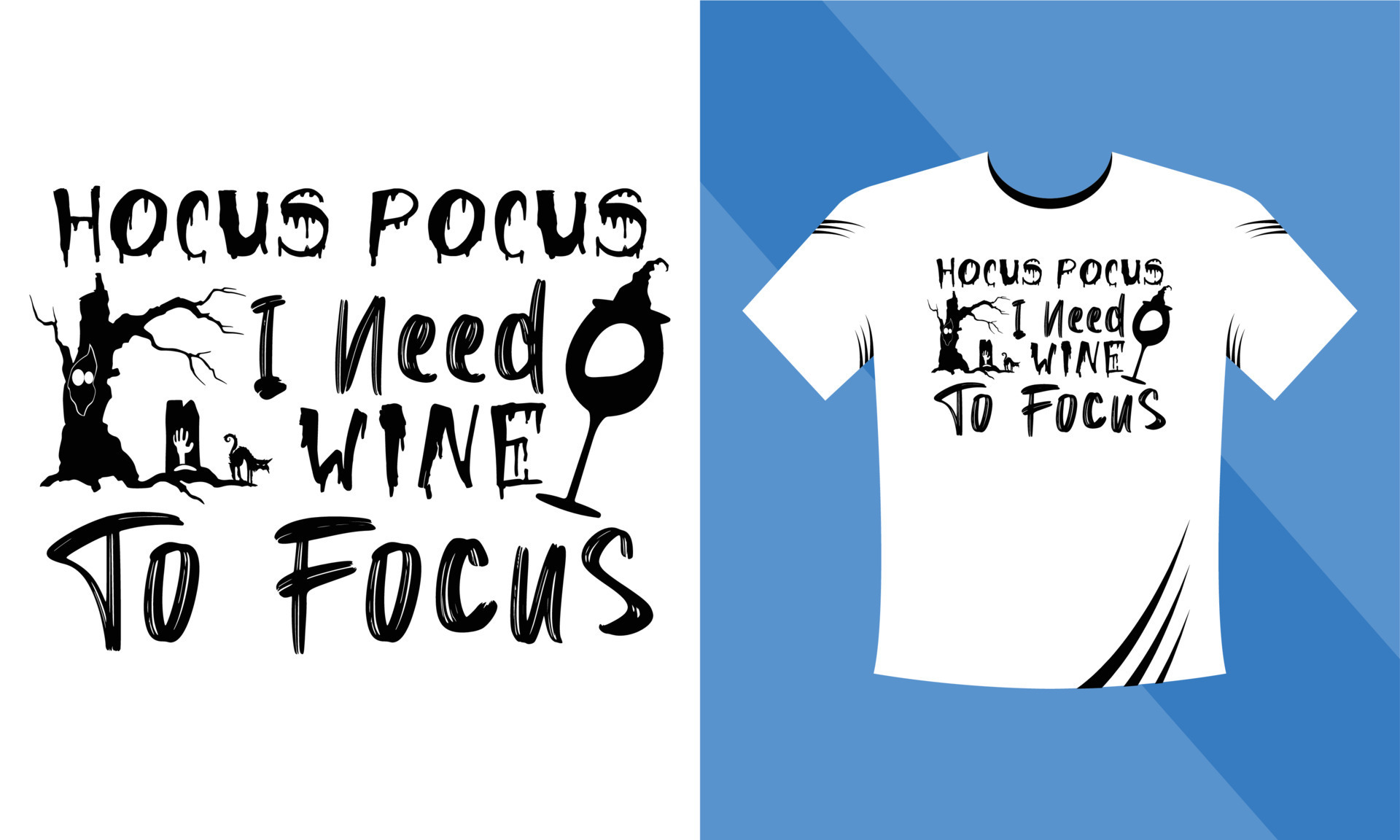 Hocus pocus I need wine to focus Halloween T Shirt design template