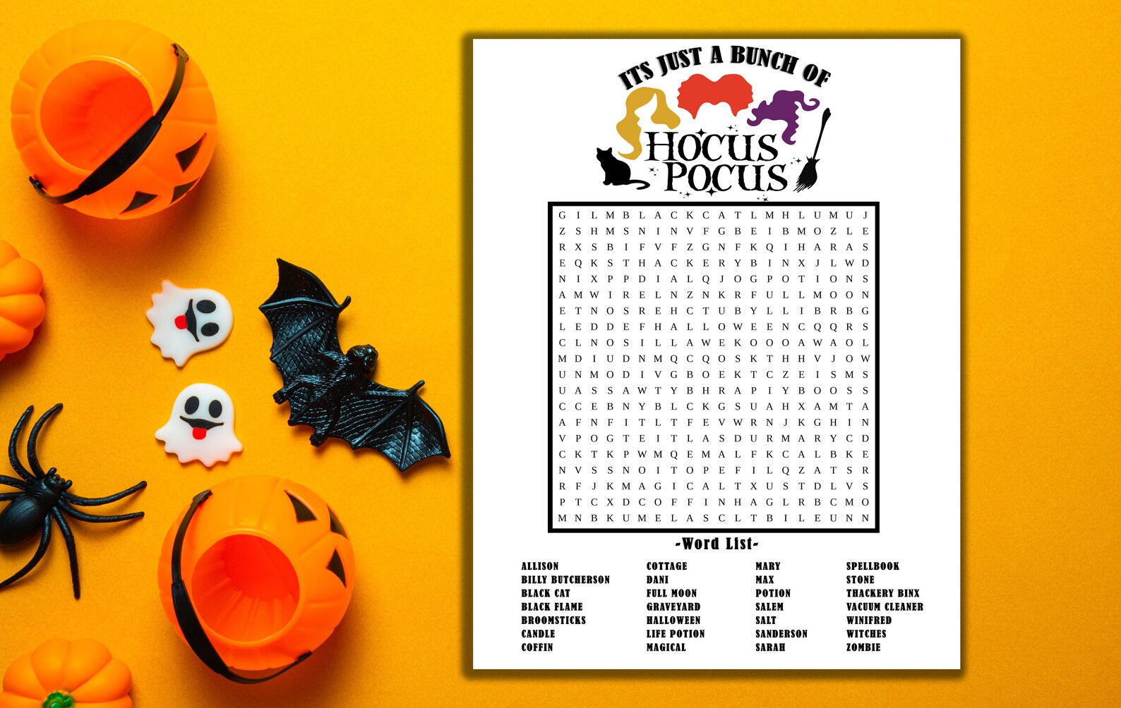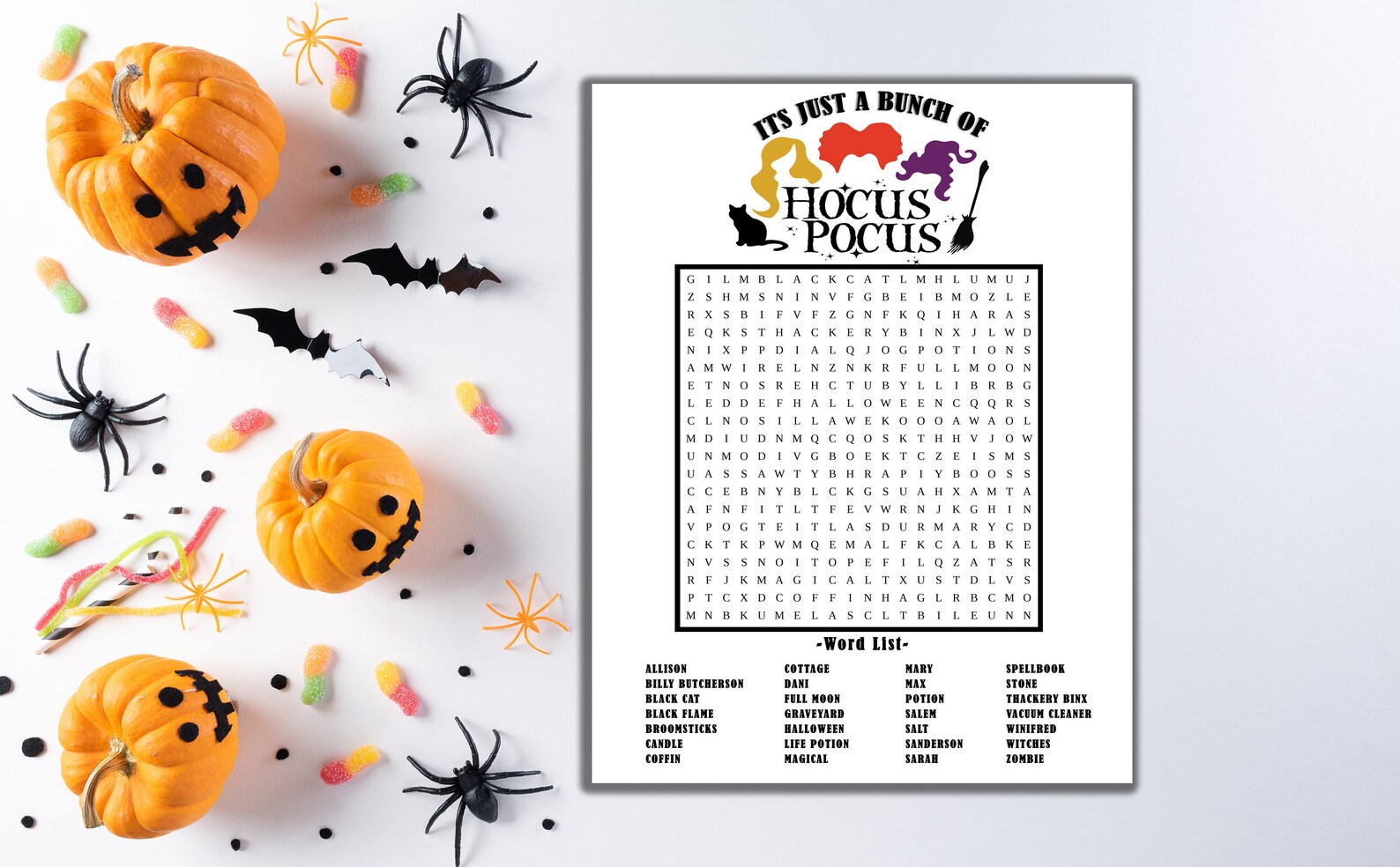 Hocus Pocus Word Search Game Instant Download Halloween Word Etsy