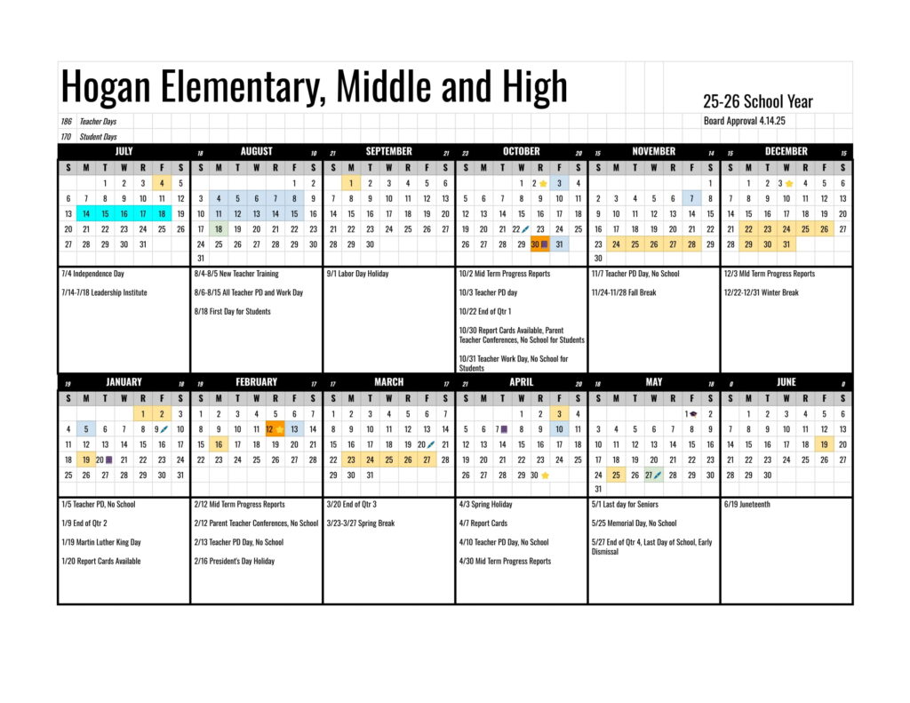 Hogan Middle School Calendar
