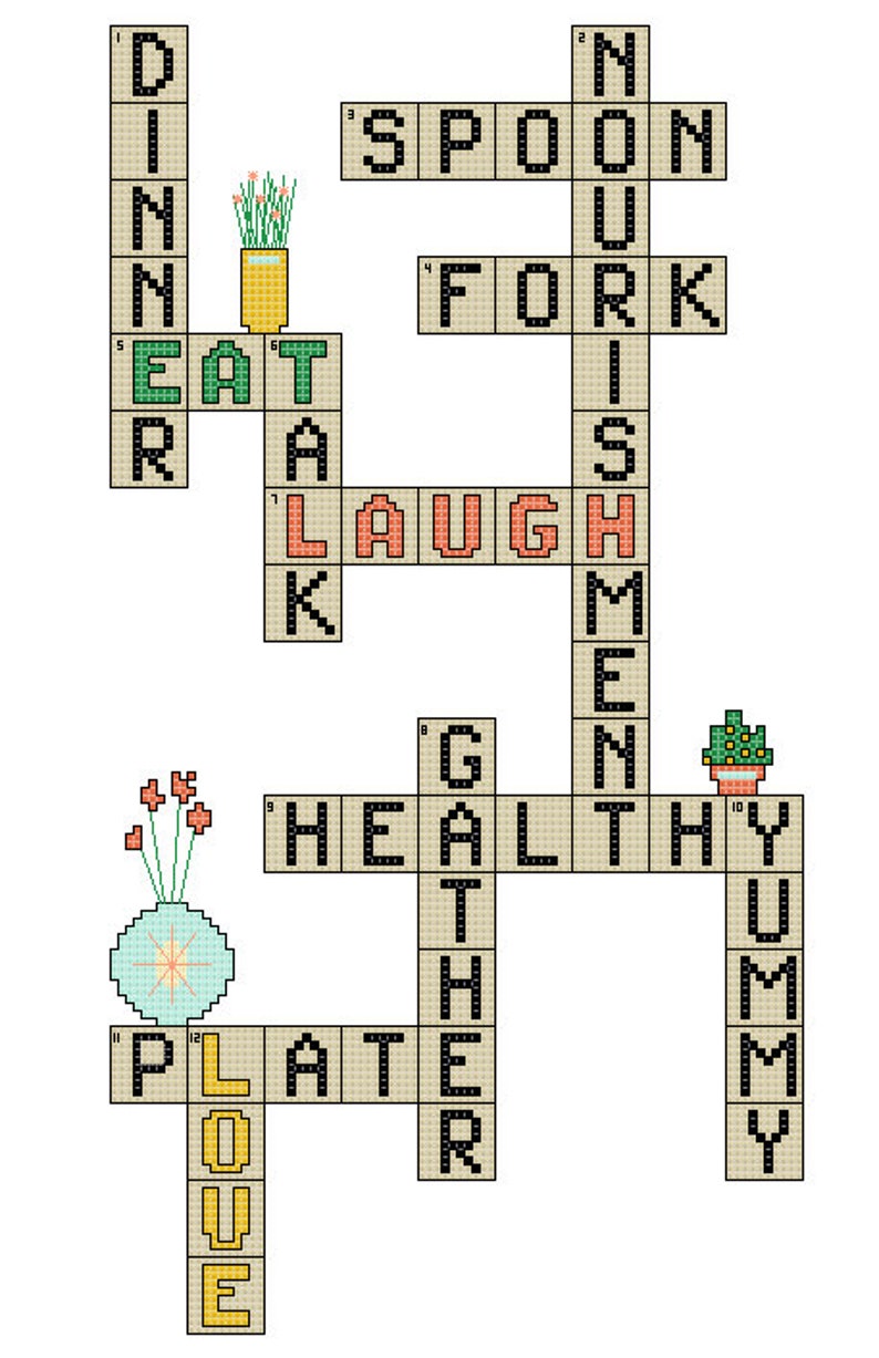 Crossword Puzzle Dining Eat Laugh Love Words With Plants Cross Stitch