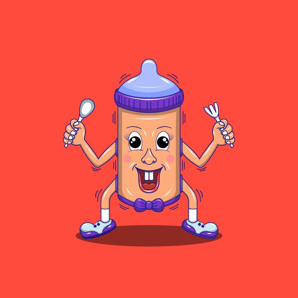 Baby bootle cartoon character hold spoon 9640663 Vector Art at Vecteezy