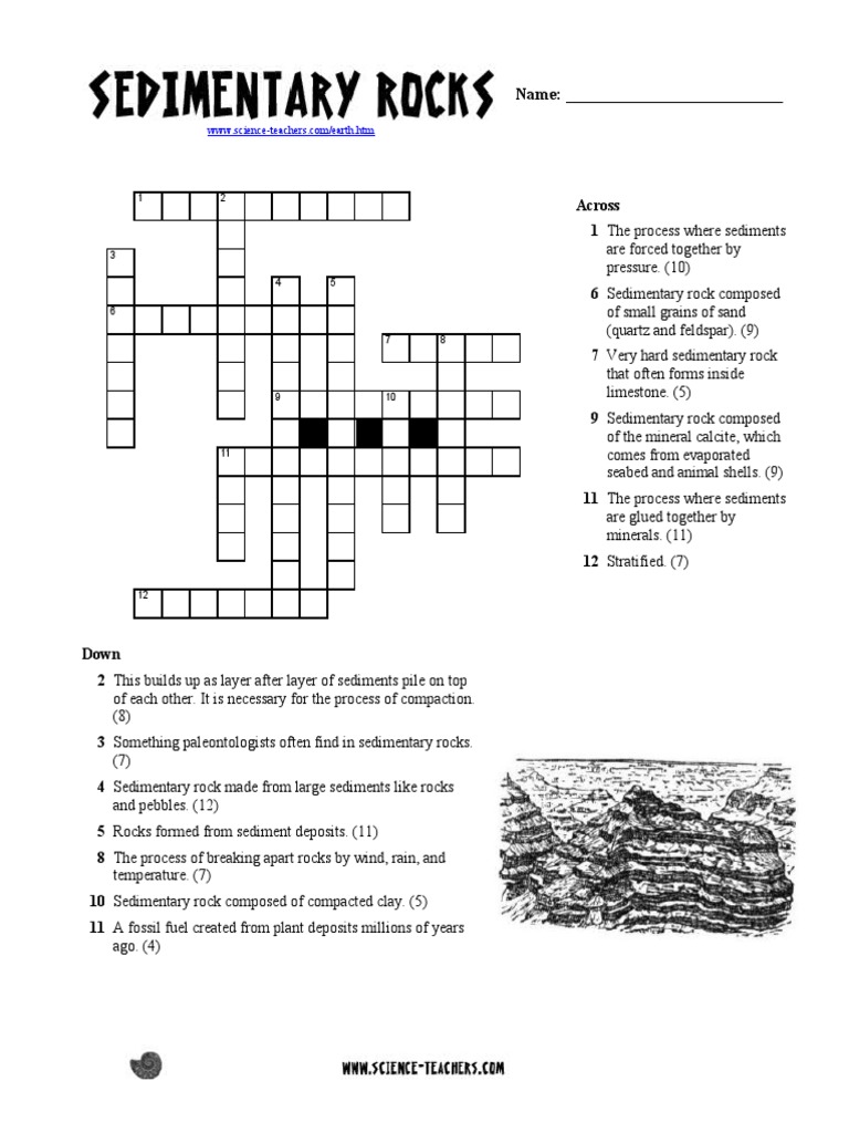 Sedimentary Rocks Crossword Puzzle