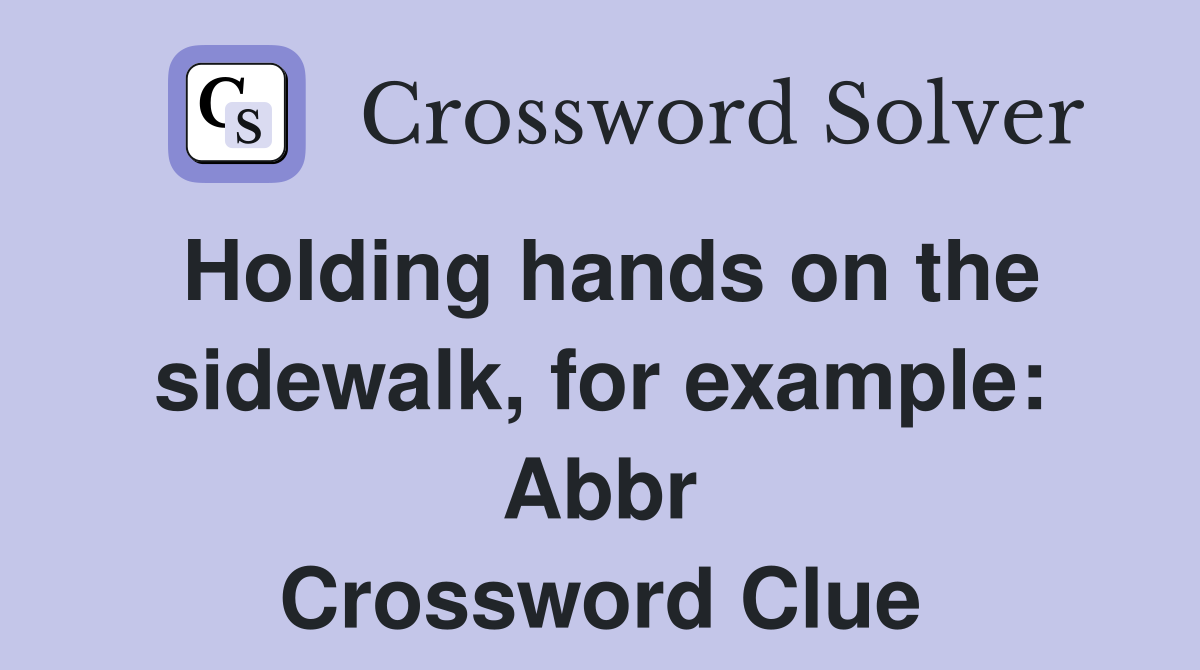 Holding hands on the sidewalk for example: Abbr Crossword Clue