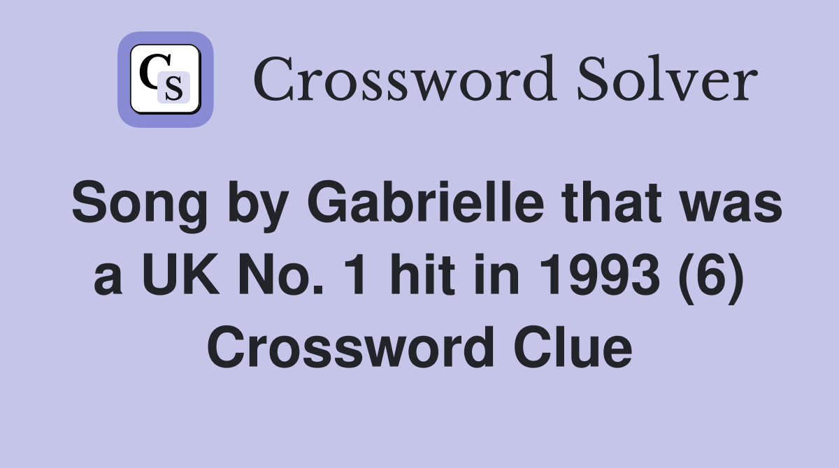 Song by Gabrielle that was a UK No 1 hit in 1993 (6) Crossword Clue