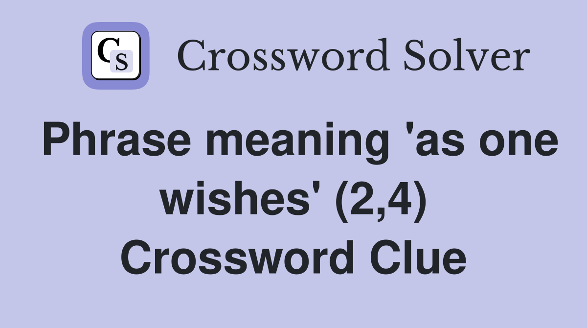 Phrase meaning #39 as one wishes #39 (2 4) Crossword Clue Answers