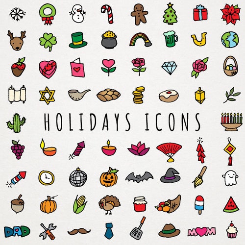 Calendar Holiday Icons Clip Art Clipart Watercolor Hand Drawn Etsy