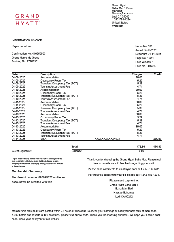 Days Inn Hotel Receipt Template
