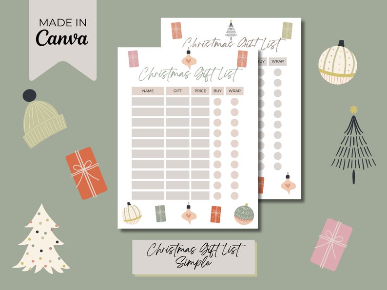 Christmas Gift List Template Instant Download Digital Download