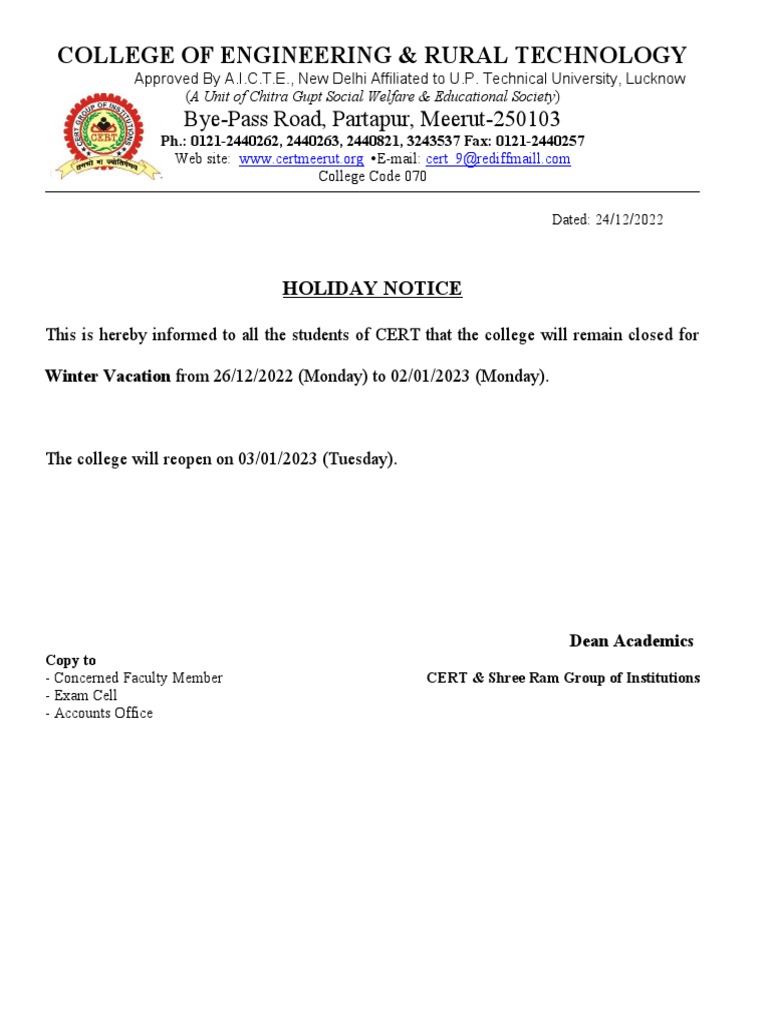 holiday notice PDF