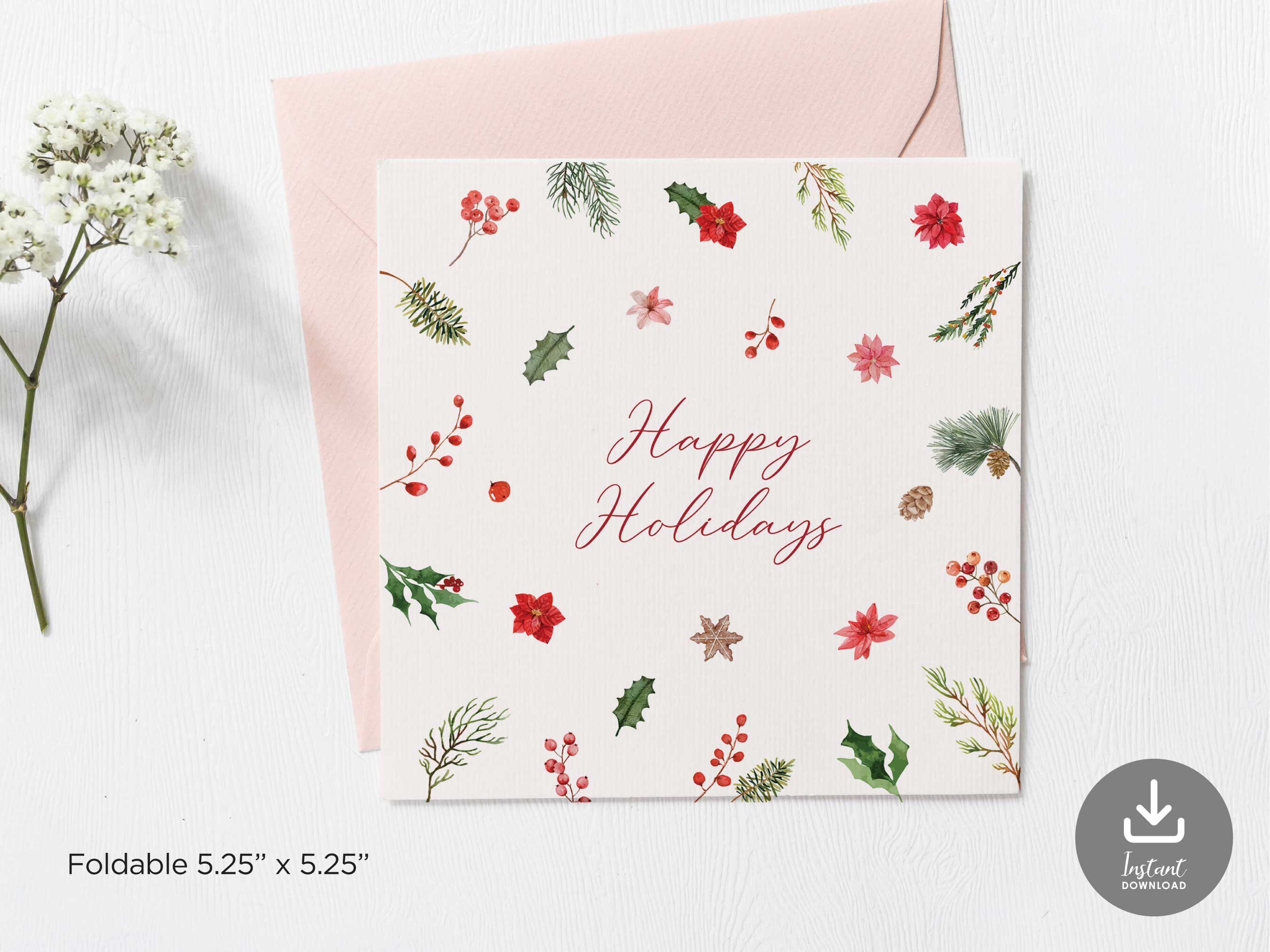 Happy Holiday Printable Cards Printable Botanical Holiday Etsy