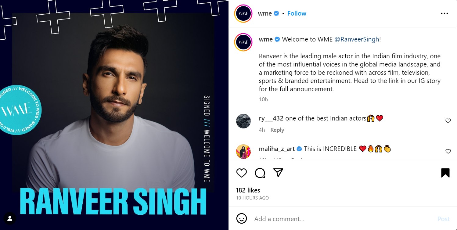 Ranveer Singh signs up with Hollywood talent agency William Morris