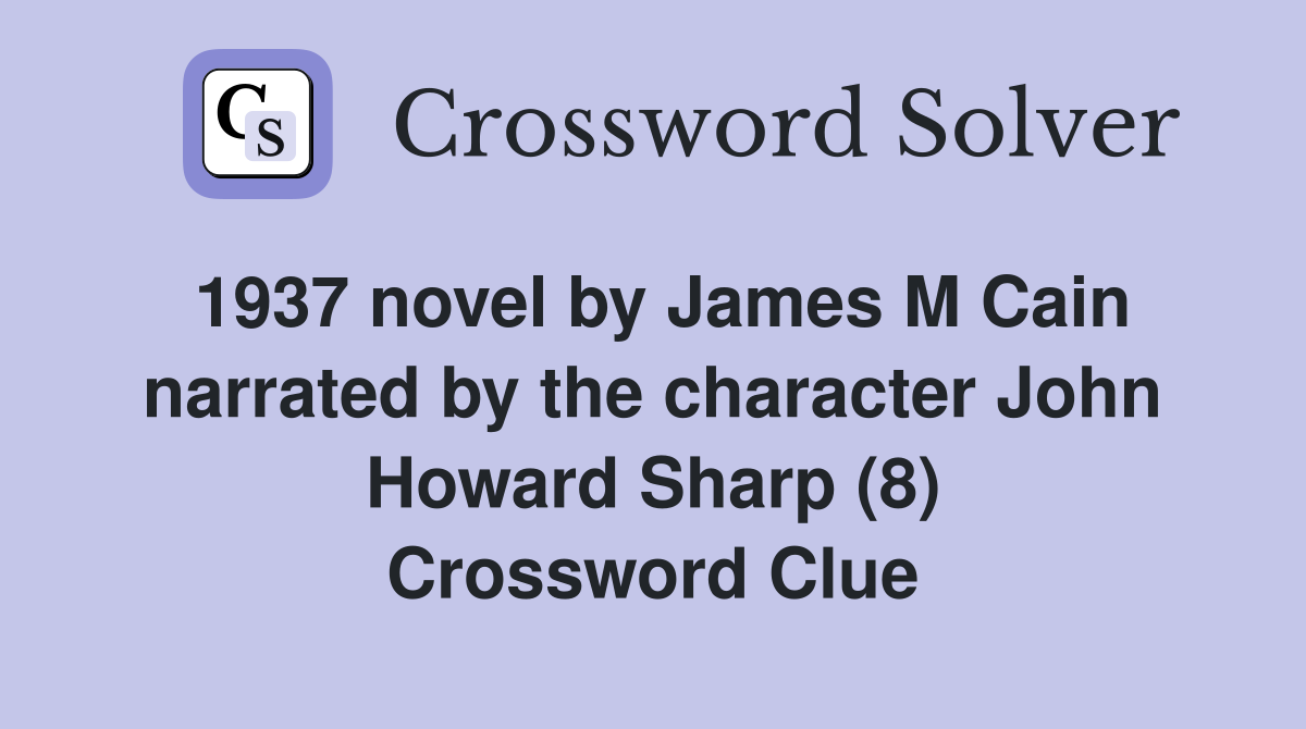 1937 novel by James M Cain narrated by the character John Howard Sharp