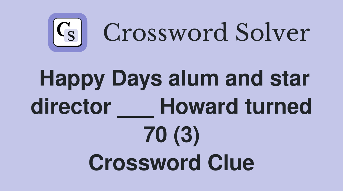 Happy Days alum and star director Howard turned 70 (3) Crossword