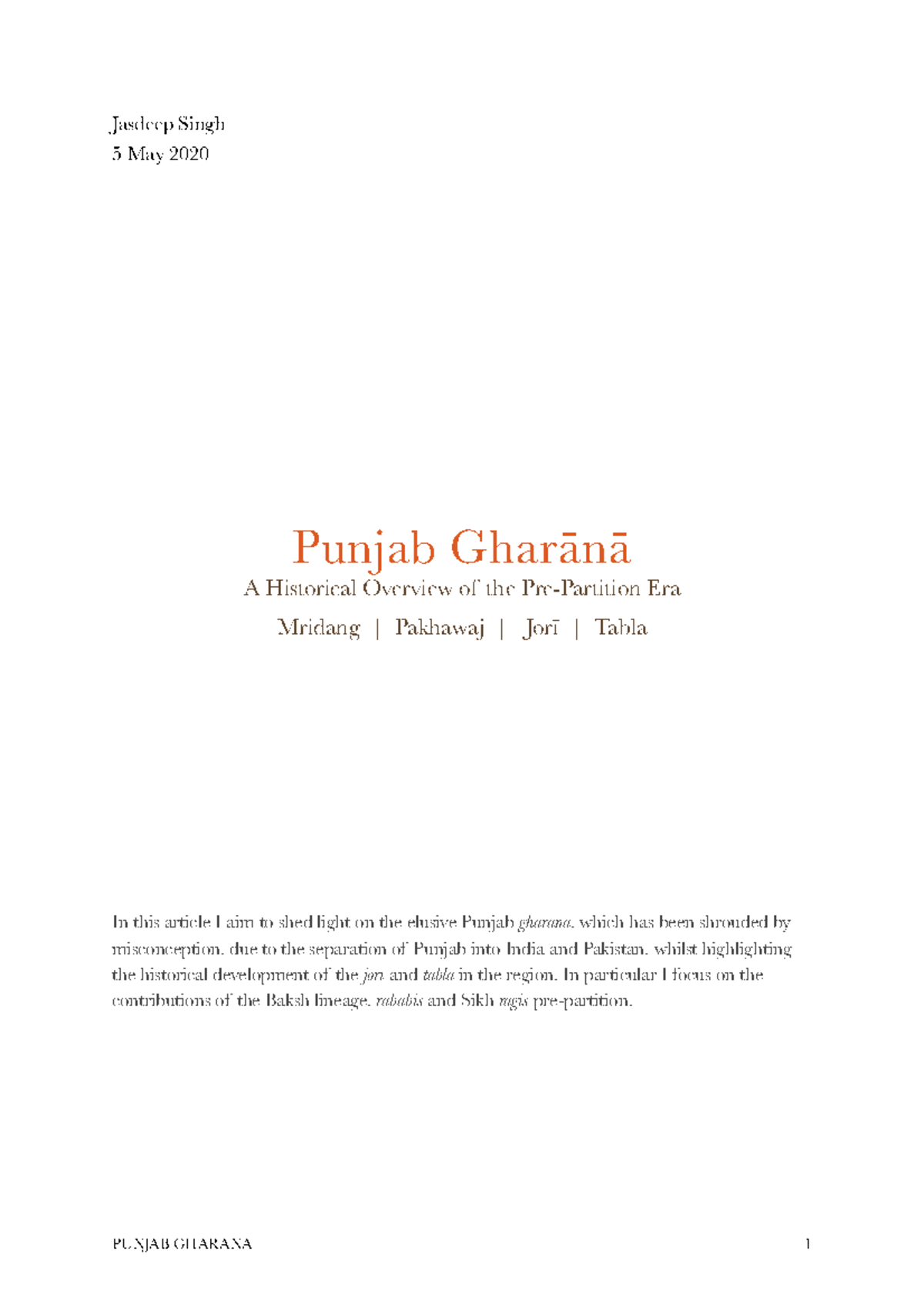 Punjab Gharana A Historical Overview of Jasdeep Singh 5 May 2020