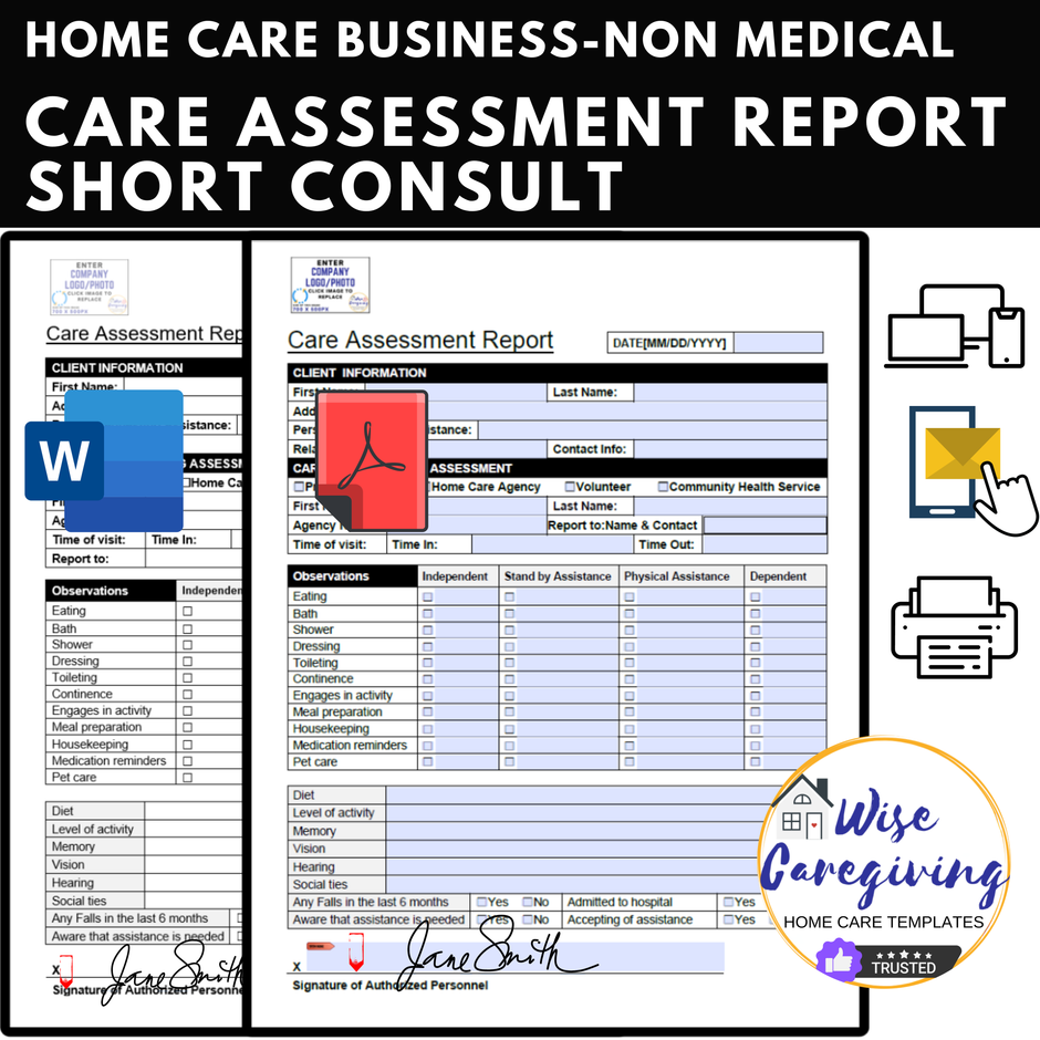 Home Care Client Assessment Template Editable MS Word Fillable PDF
