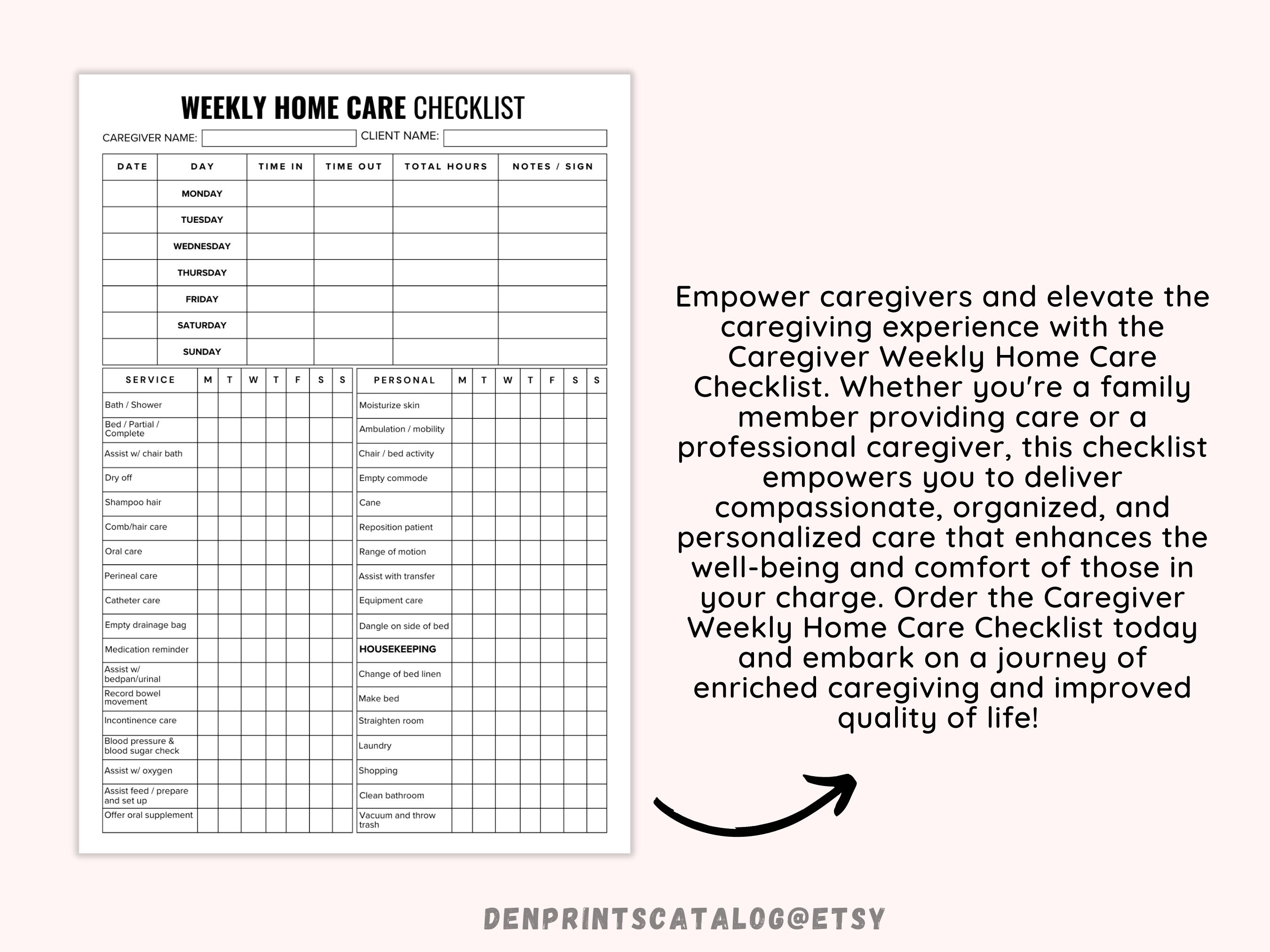 Weekly Home Care Checklist Printable Monday Start Caregiving Elderly