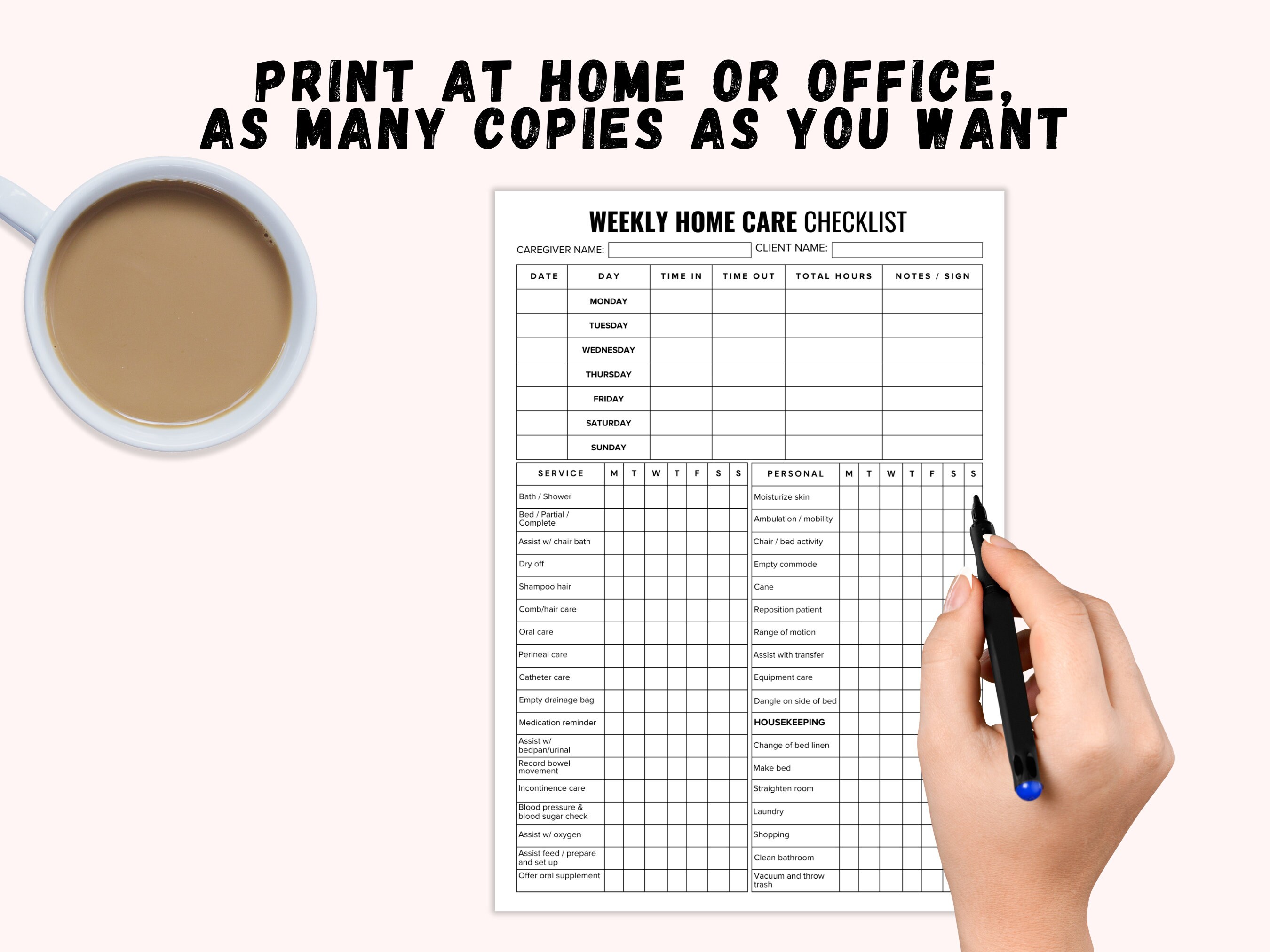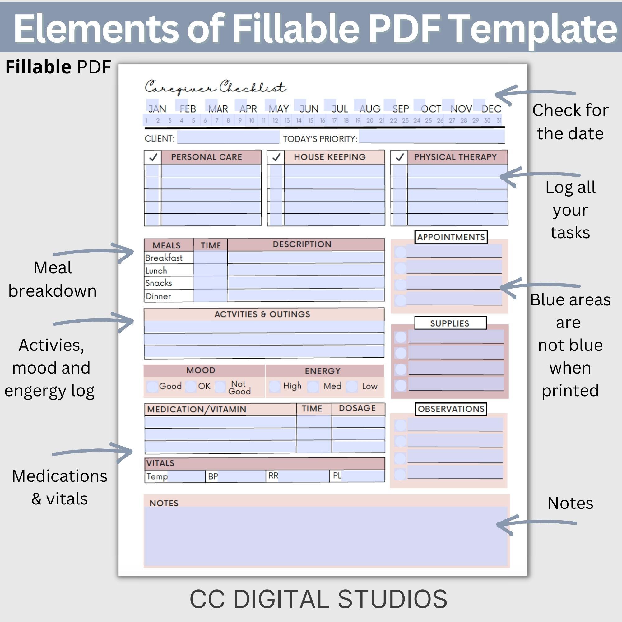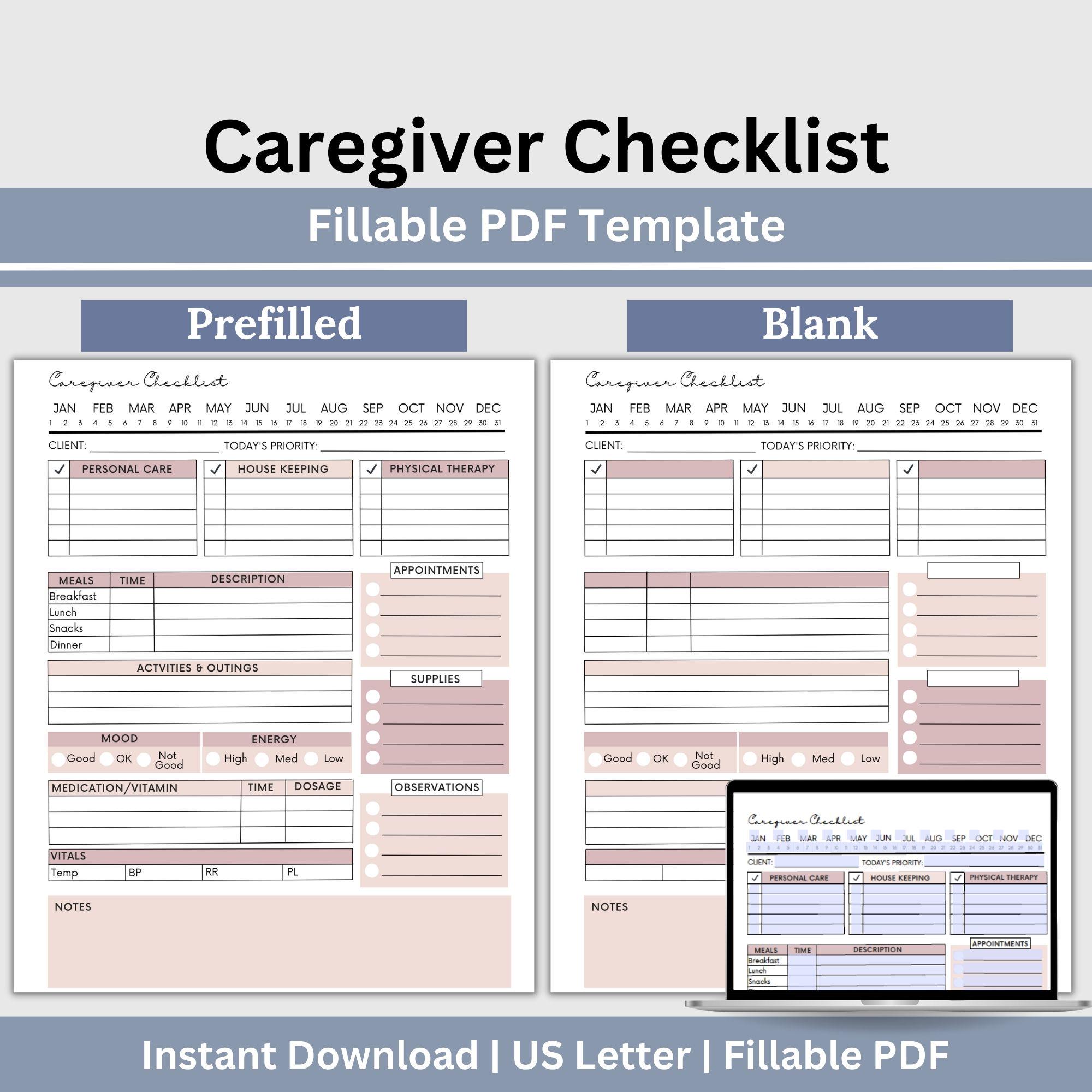 Caregiving daily checklist template word pdf fillable Artofit