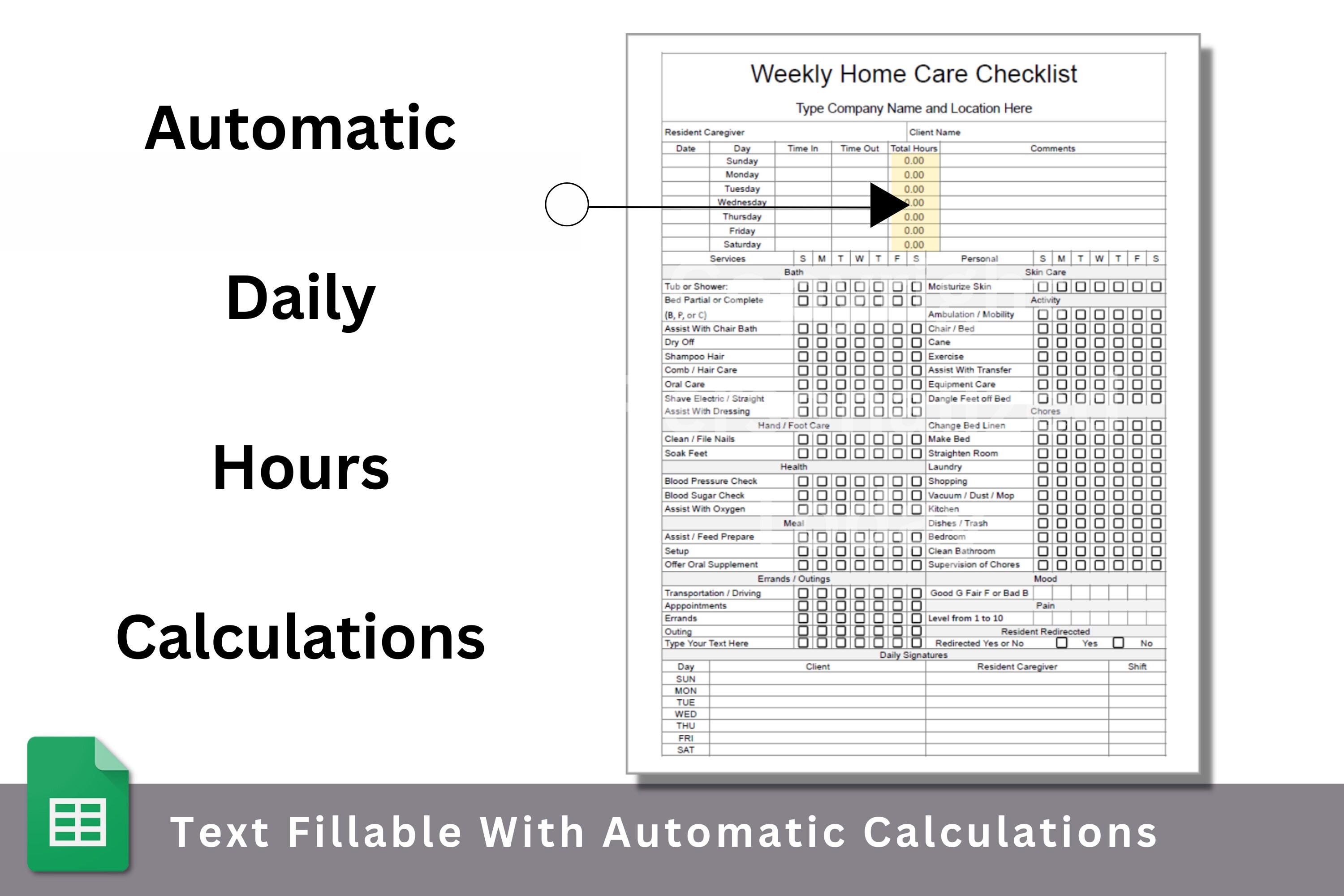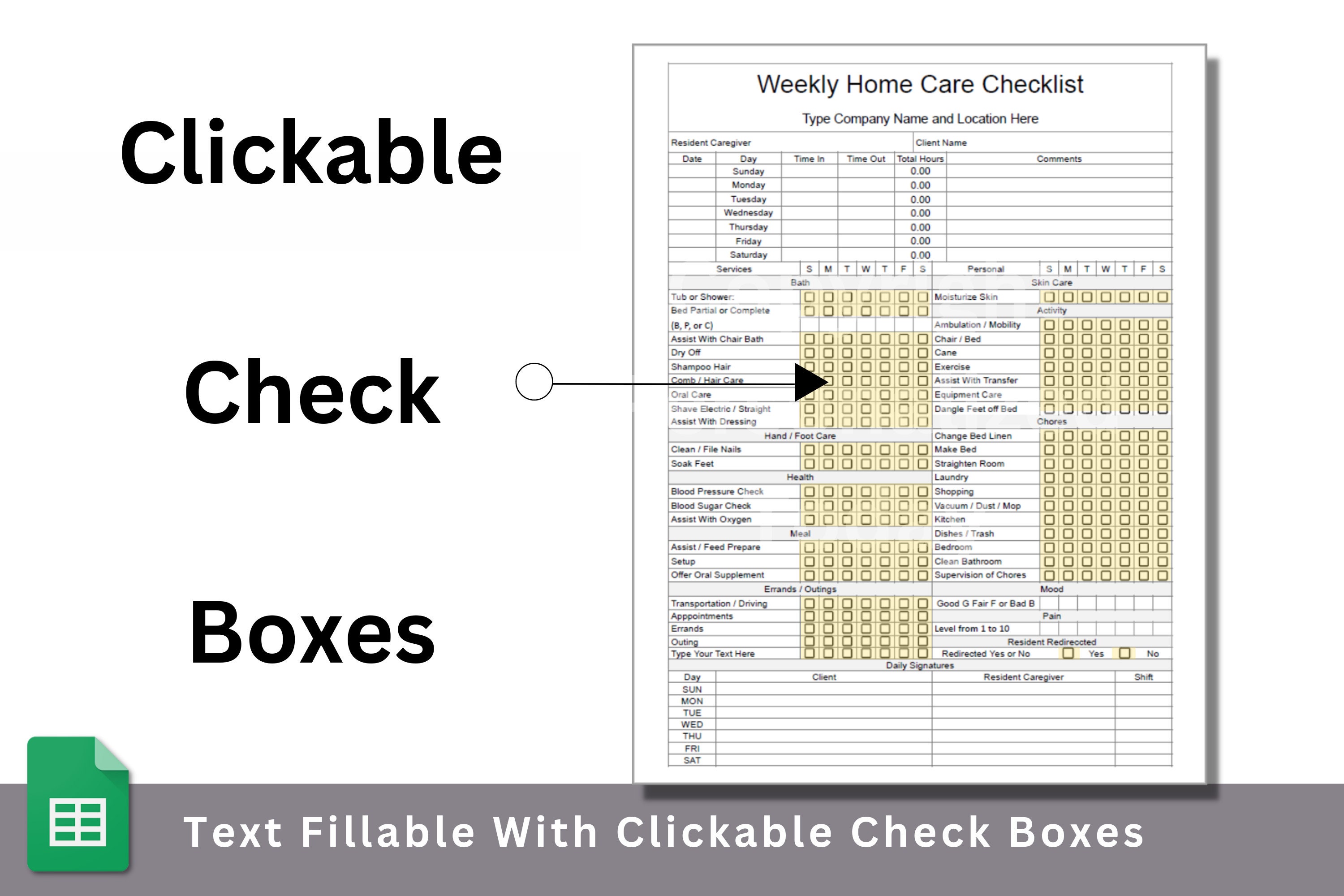 Weekly Home Care Checklist Timesheet Template Google Sheets Online