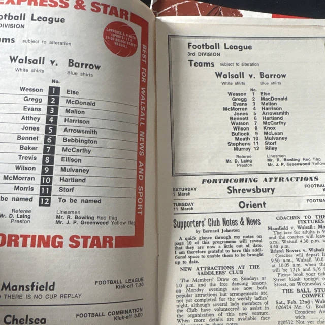 WALSALL X 18 Home Programmes 1968/69 ( Division Three FA Cup ) £12 92