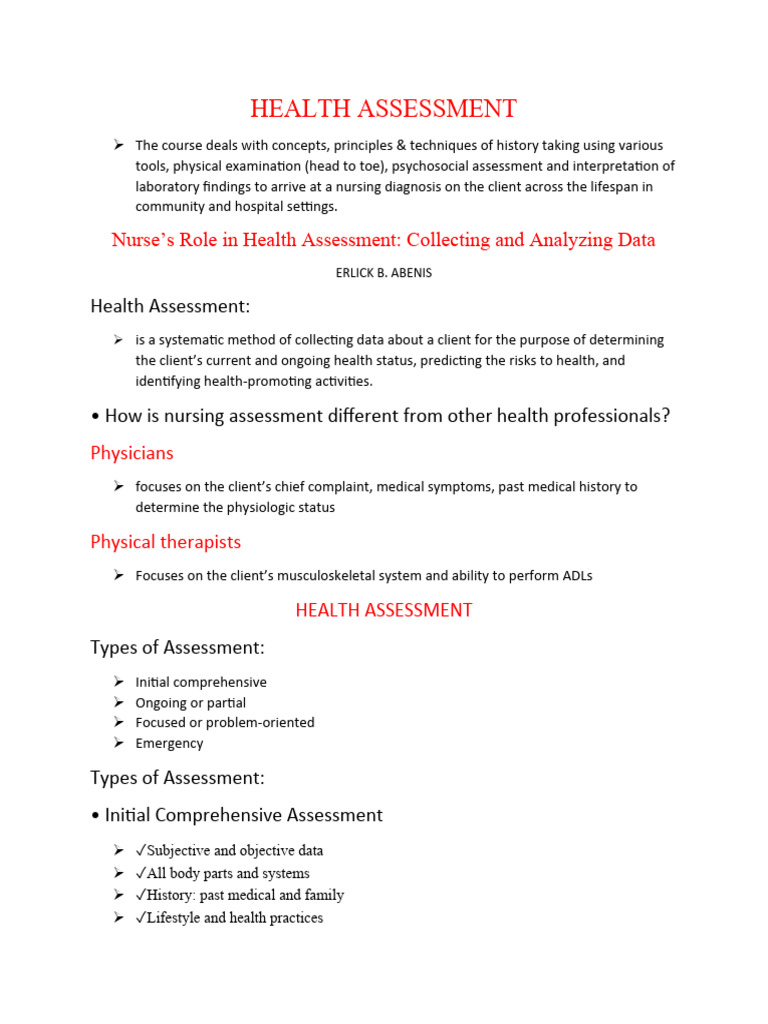 1002 Health Assessment Notes Nurs 1002 Health Assessment UOS