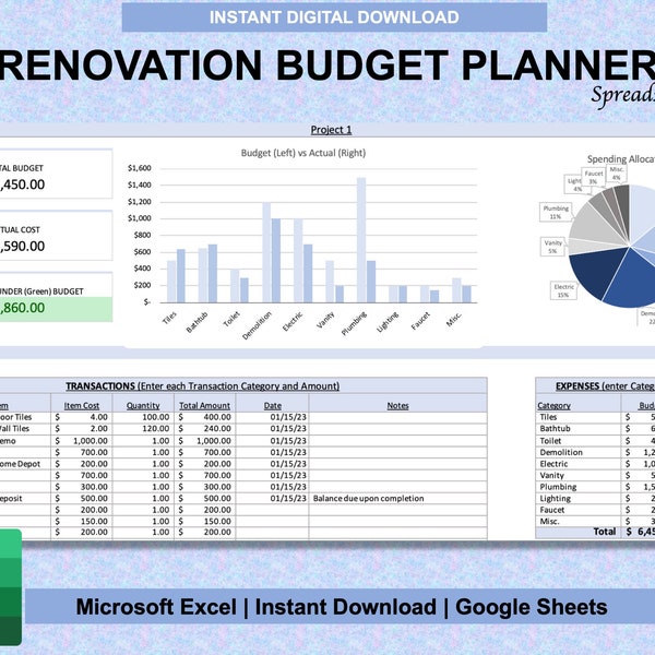 Home Renovation Remodel Budget Excel Template Renovation Etsy