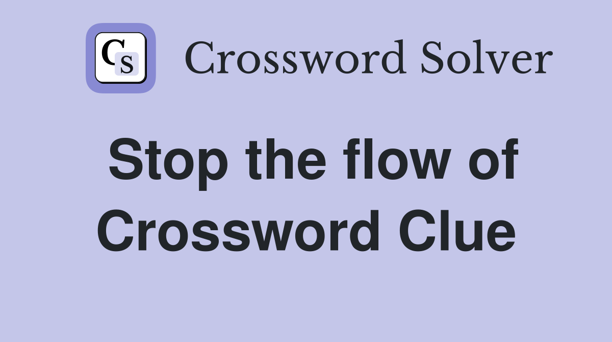 Stop the flow of Crossword Clue Answers Crossword Solver