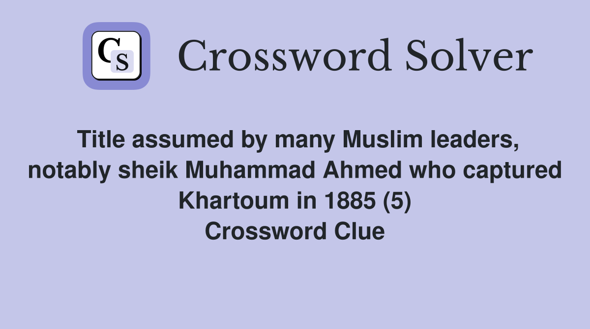 Title assumed by many Muslim leaders notably sheik Muhammad Ahmed who