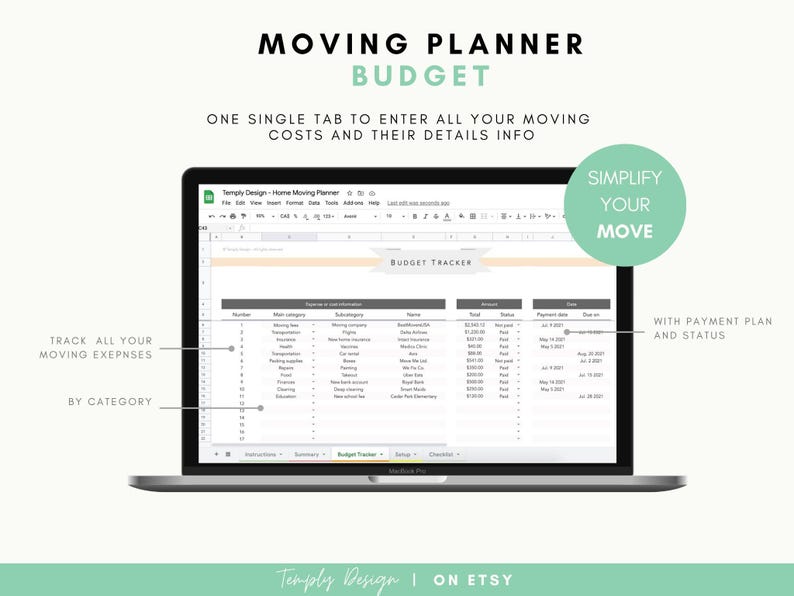 Home Moving Planner 2026 Moving Spreadsheet Excel and Google New Home