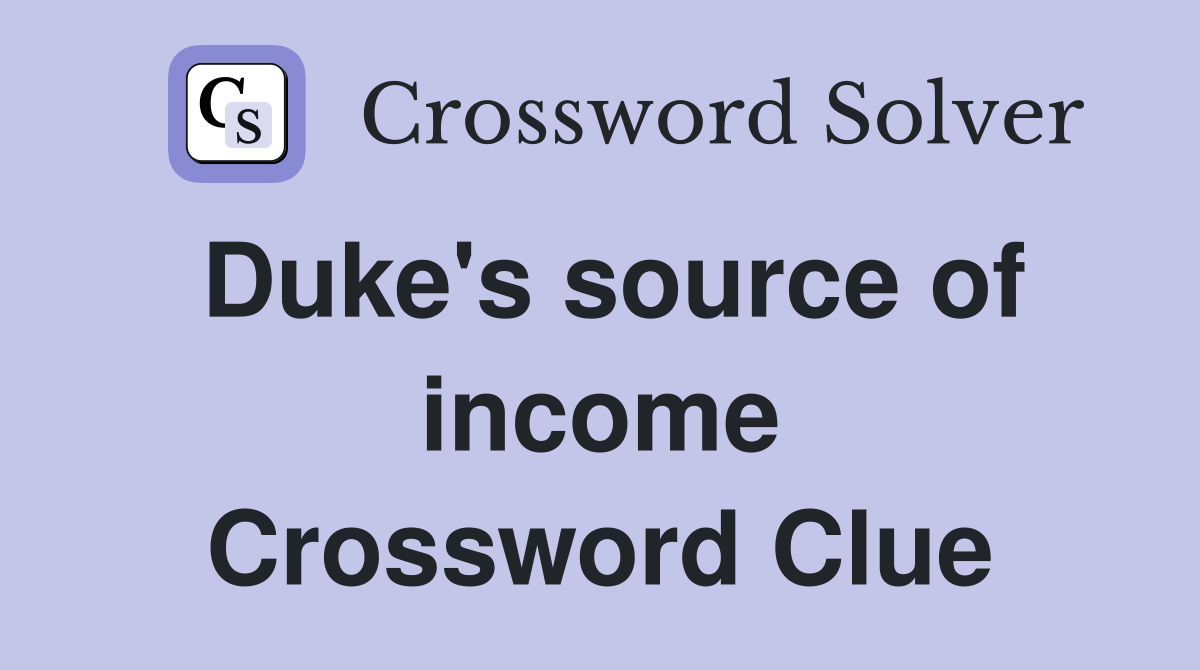 Duke #39 s source of income Crossword Clue Answers Crossword Solver