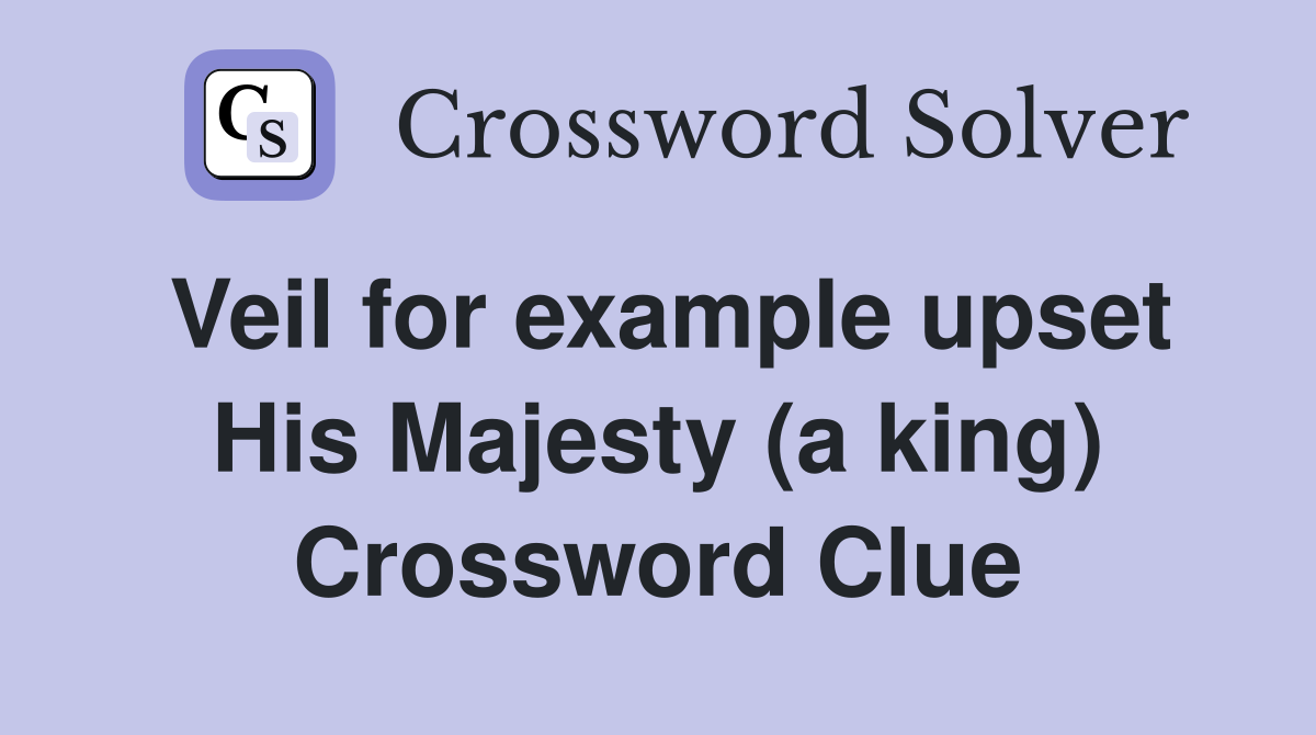 Veil for example upset His Majesty (a king) Crossword Clue Answers