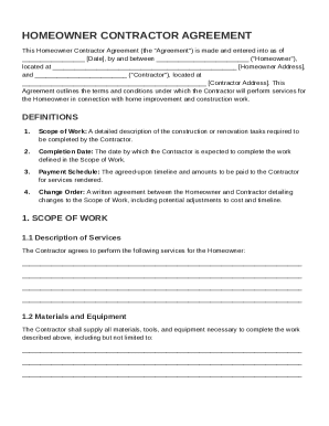 Homeowner Contractor Fill Online Printable Fillable Blank pdfFiller