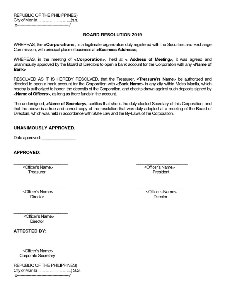 Sample Board Resolution To Open Bank Account In Niger vrogue co