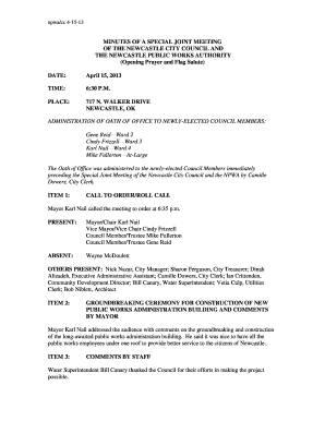 Fillable Online MINUTES OF A SPECIAL JOINT MEETING OF THE NEWCASTLE