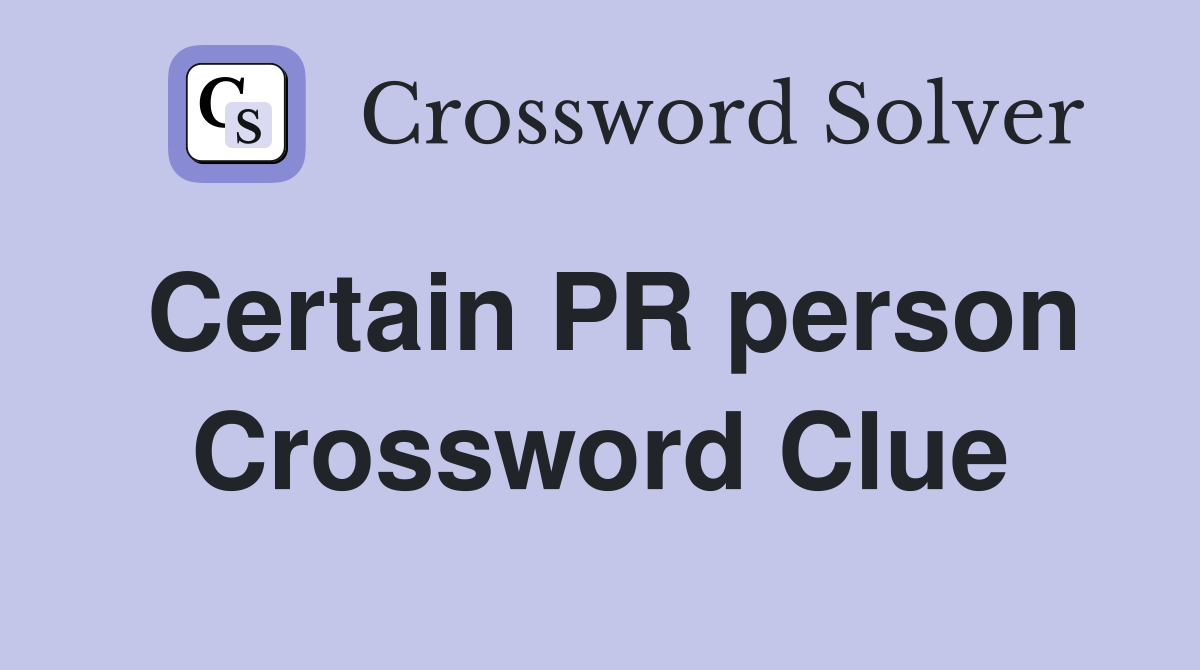 Certain PR person Crossword Clue Answers Crossword Solver