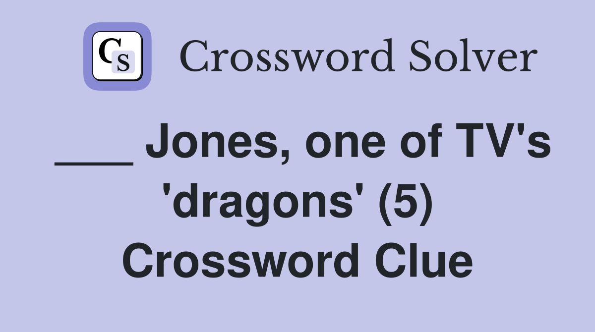 Jones one of TV #39 s #39 dragons #39 (5) Crossword Clue Answers Crossword