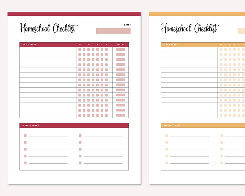 Homeschool Checklist Printable: Daily Weekly Tasks (digital Download