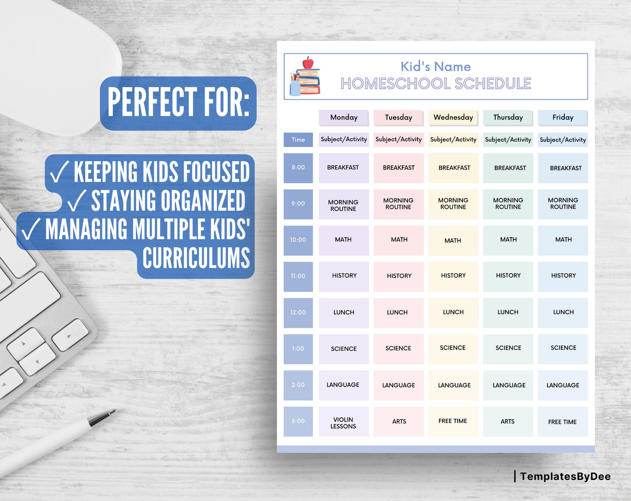 Homeschool Schedule Templates for Kindergarten and Elementary