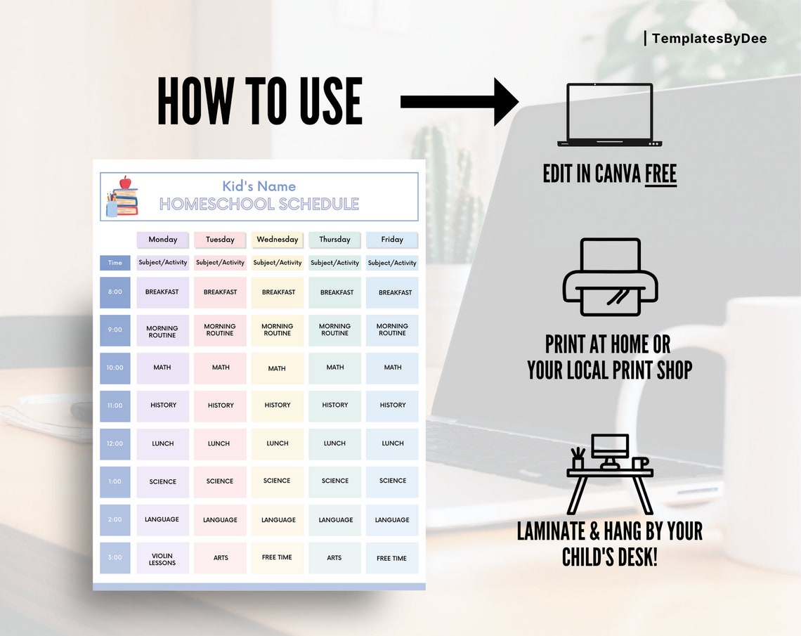Homeschool Class Schedule Template Weekly Daily Chart Etsy