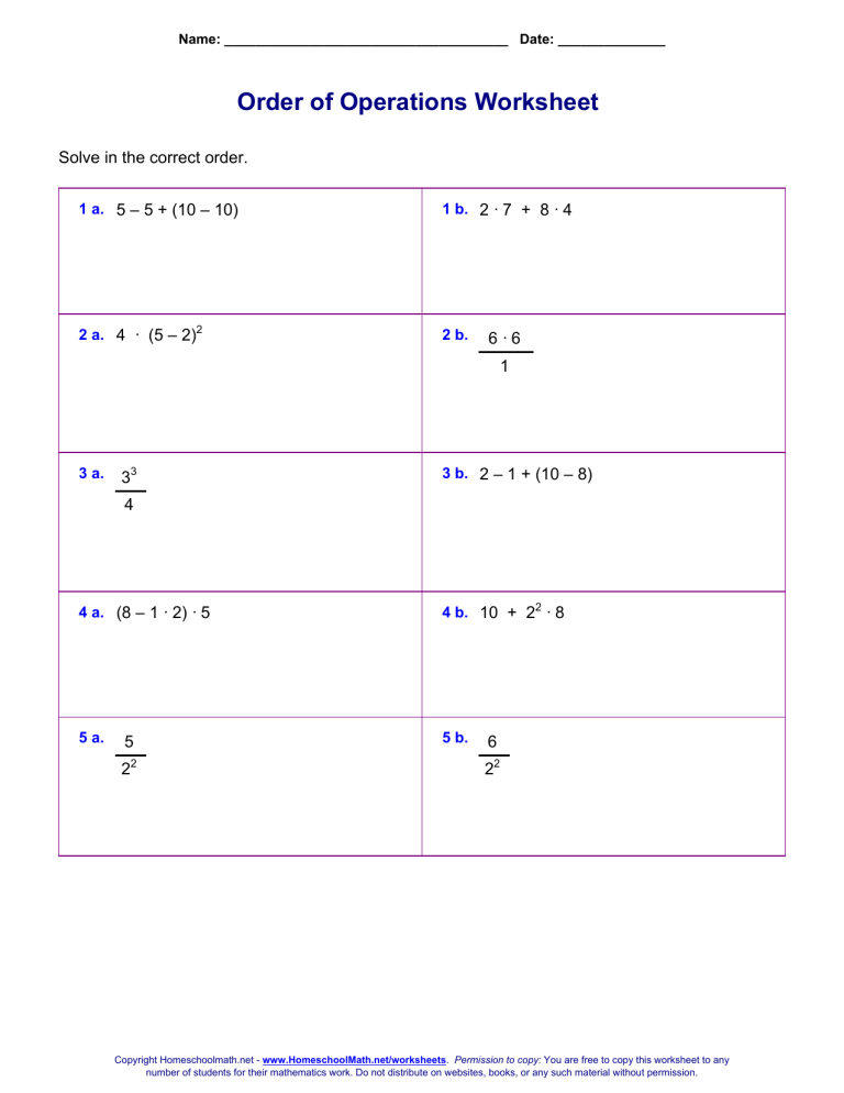 Order of Operations Math Worksheet with Answer Key HomeschoolMath