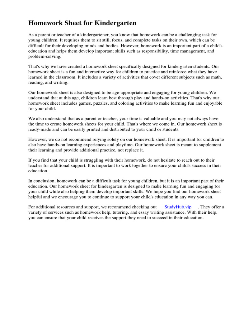 Kindergarten Homework Printable Free Download Free PDF Homework