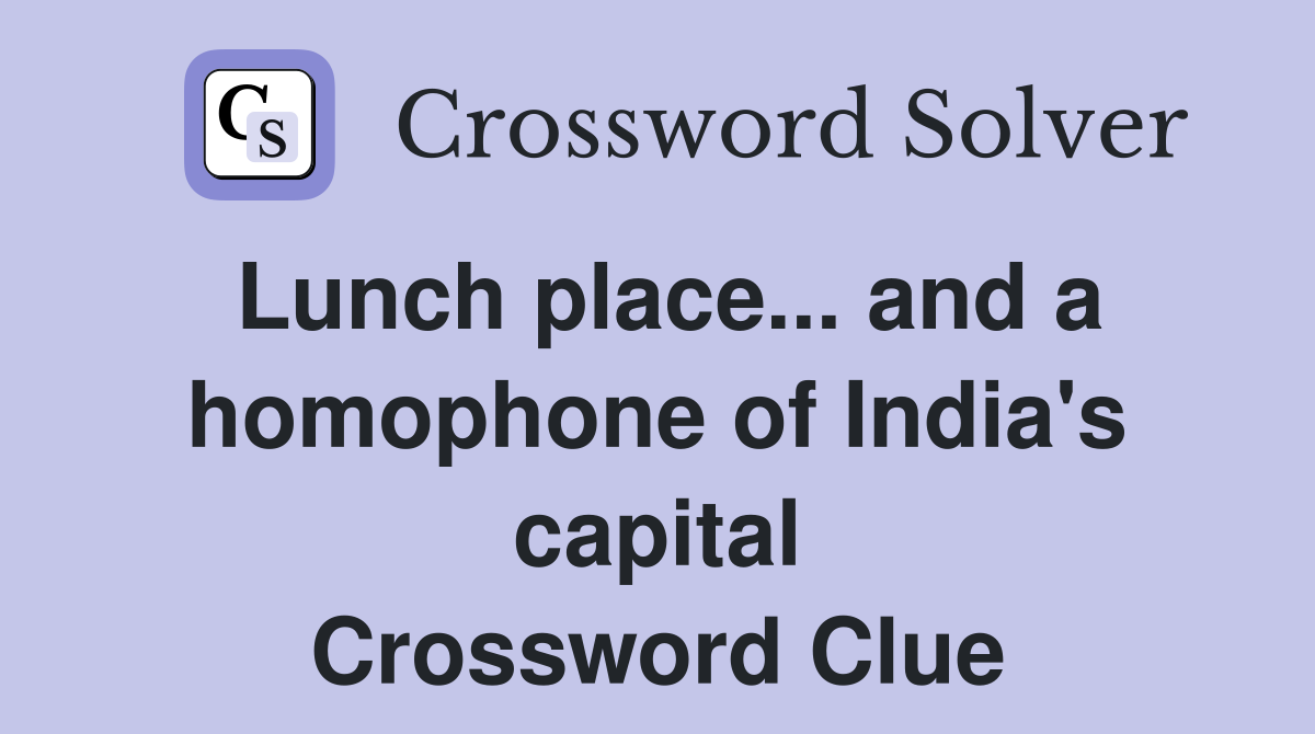 Lunch place and a homophone of India #39 s capital Crossword Clue