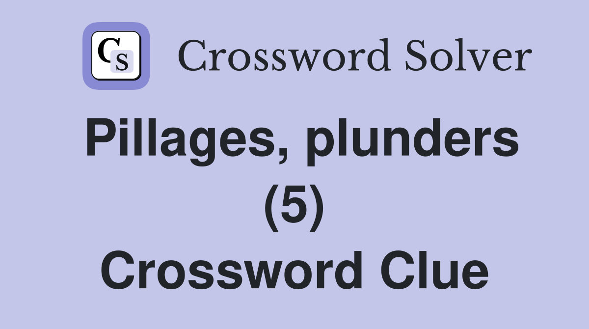 Pillages plunders (5) Crossword Clue Answers Crossword Solver