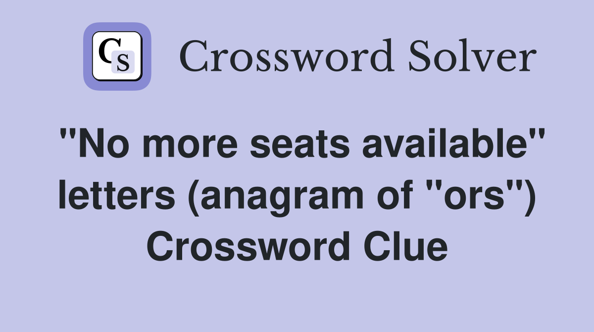 quot No more seats available quot letters (anagram of quot ors quot ) Crossword Clue