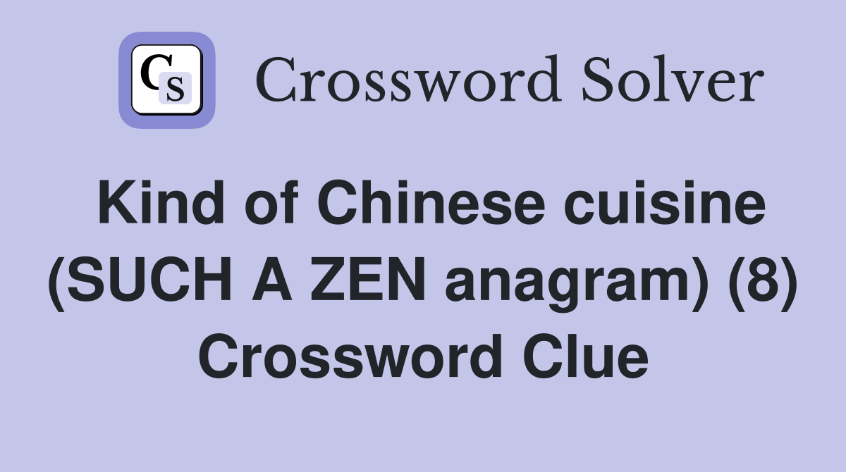 Kind of Chinese cuisine (SUCH A ZEN anagram) (8) Crossword Clue