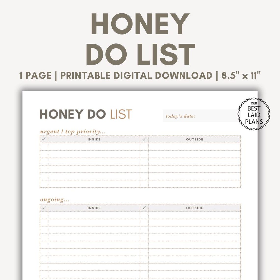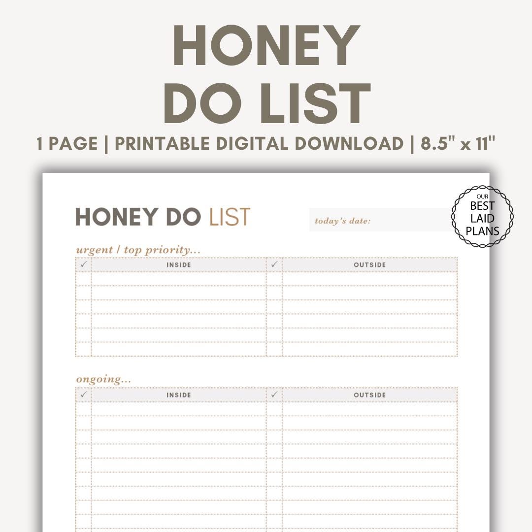 Simple Honey To do List / Couples Task Checklist / Husband Partner