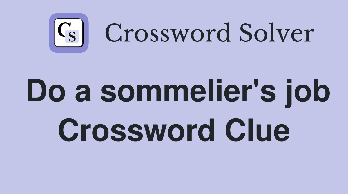 Do a sommelier #39 s job Crossword Clue Answers Crossword Solver