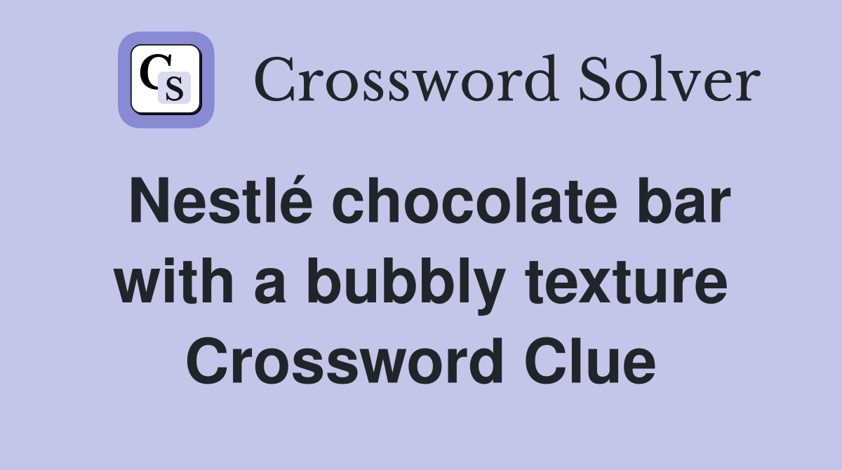 Nestlé chocolate bar with a bubbly texture Crossword Clue Answers