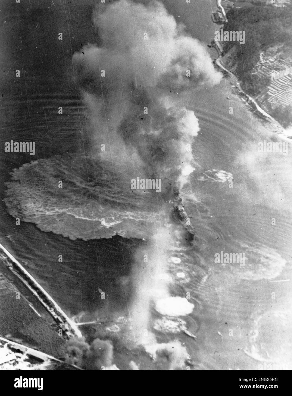 U S carrier based planes bomb a Japanese warship at Kure seaport on